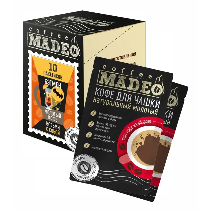 Кофе молотый Madeo Бэтмен порционный 10х10 гр