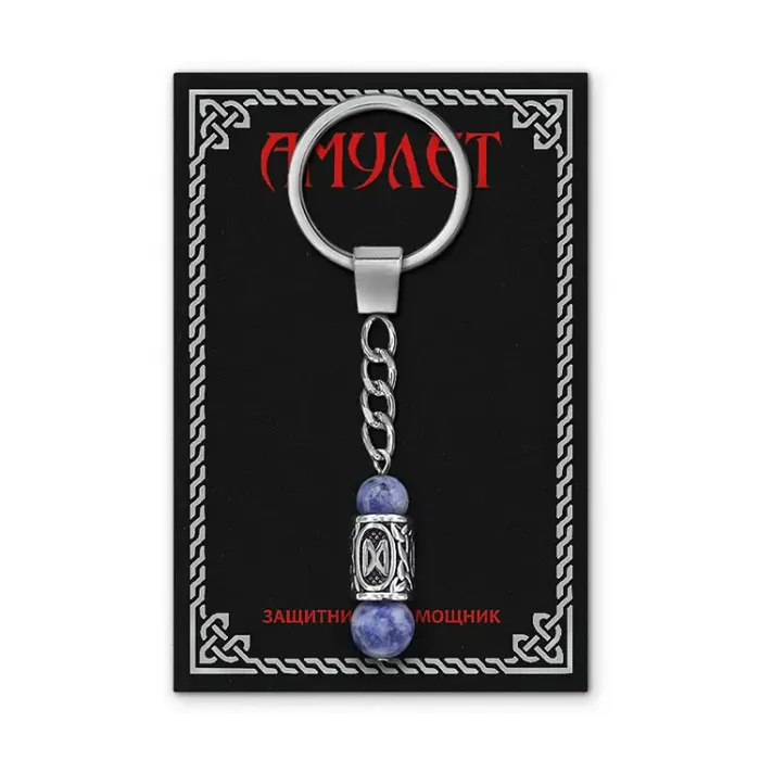 Брелок-амулет Дагаз с руной из нержавеющей стали, Содалит BKN-06