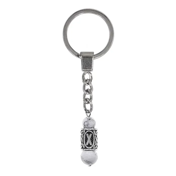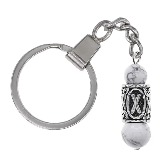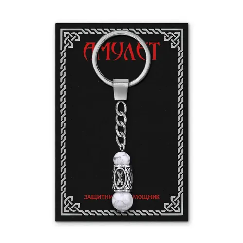 Брелок-амулет с руной Гебо из нержавеющей стали и натурального камня кахолонг.