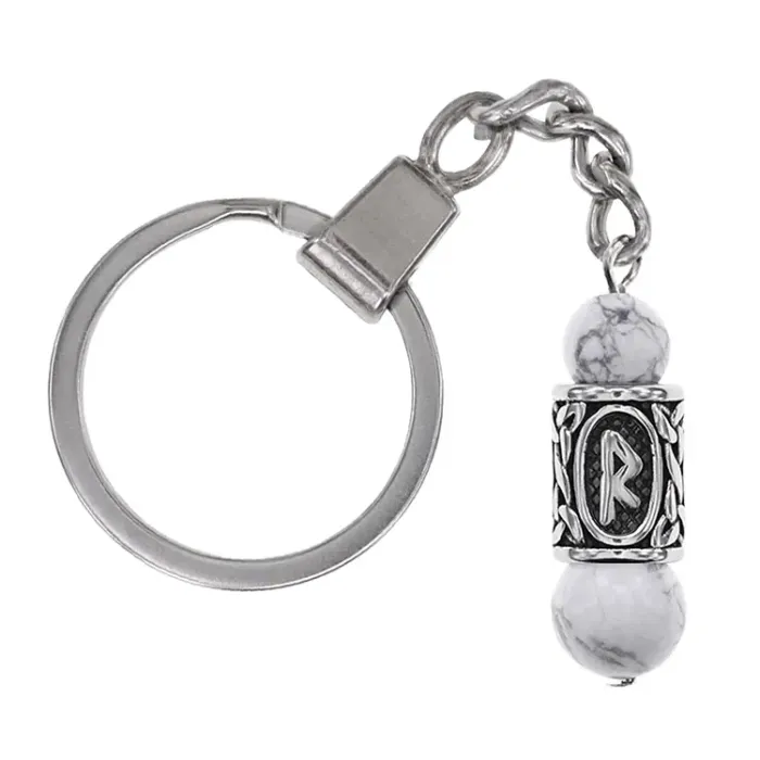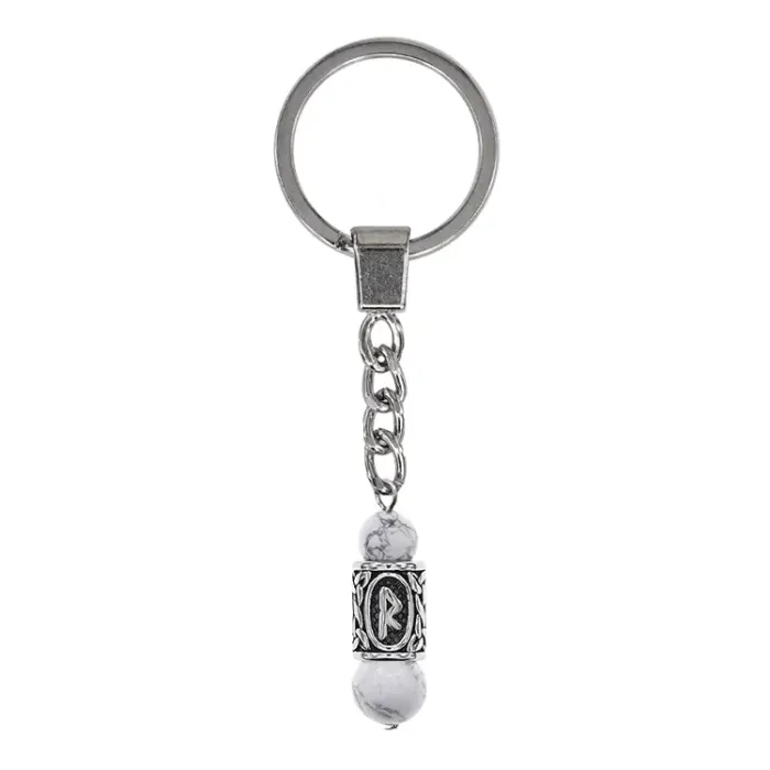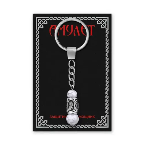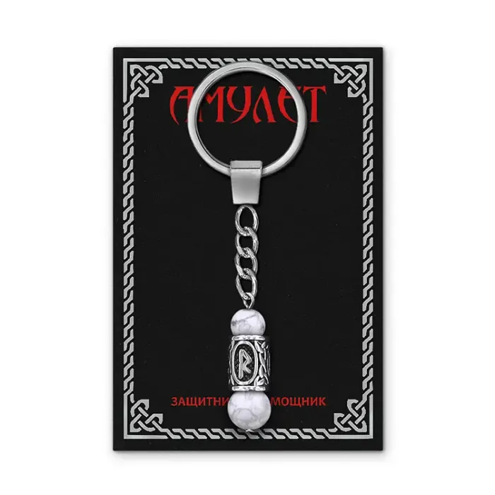 Брелок-амулет с руной Райдо из нержавеющей стали и натурального камня кахолонг.