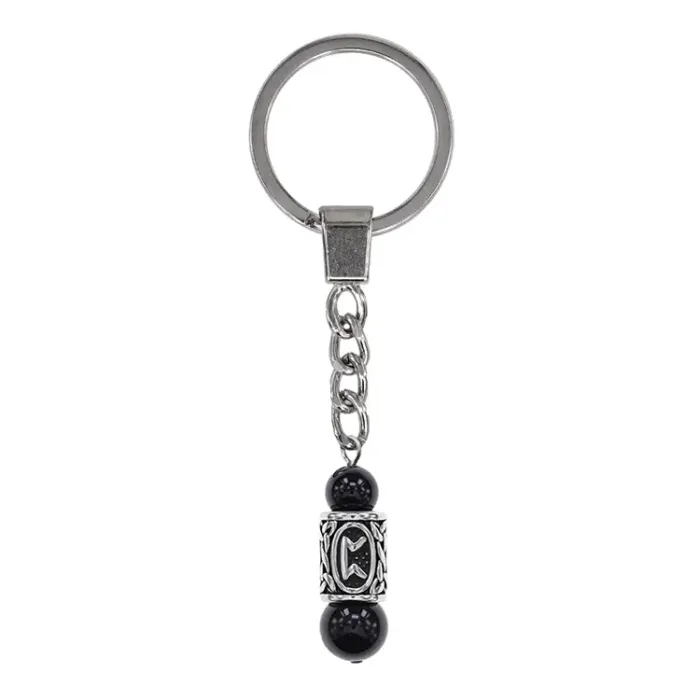 Брелок-амулет Перт с руной из нержавеющей стали, Черный агат BKN-28
