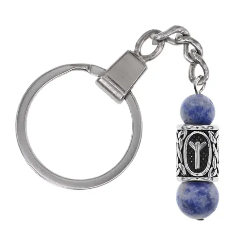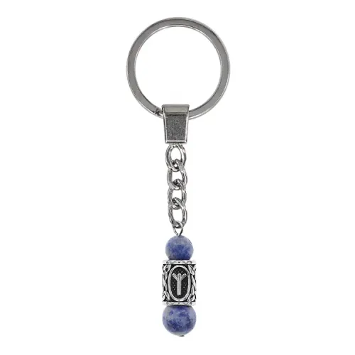 Брелок-амулет с руной Альгиз из нержавеющей стали и натурального камня содалит.