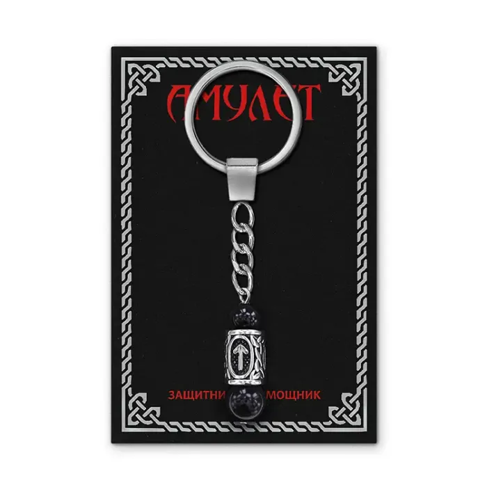 Размеры и комплектация: Бусины из камня размером 8 и 10 мм. В комплекте металлическая цепочка с кольцом для ключей, двухсторонний вкладыш с описанием руны. Упаковка — полипропиленовый пакет с этикеткой.