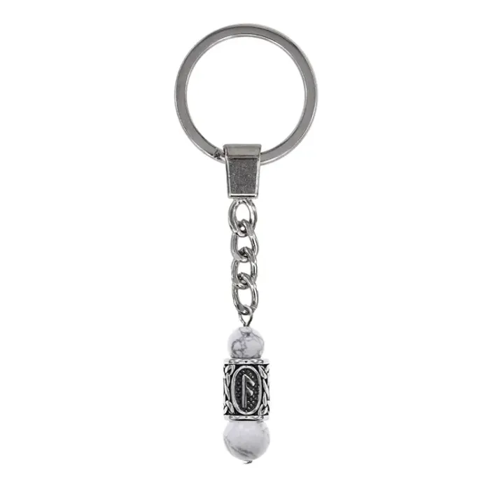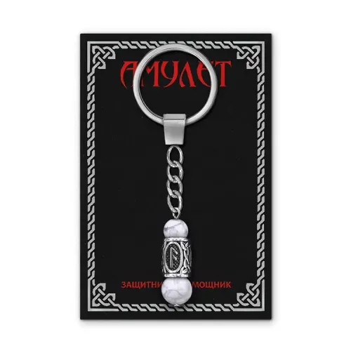 Брелок-амулет с руной Ансуз из нержавеющей стали и натурального камня кахолонг.