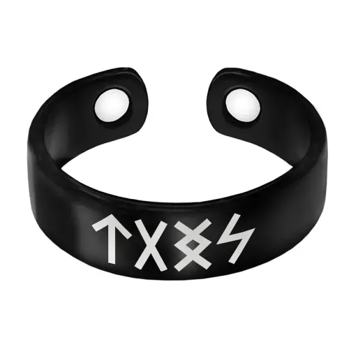 Магнитное кольцо из бижутерного сплава с лазерной гравировкой рун и безразмерным дизайном.