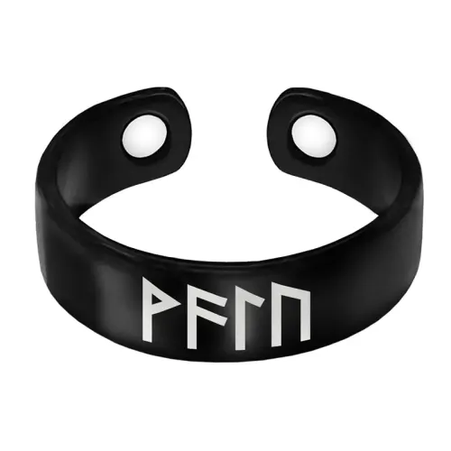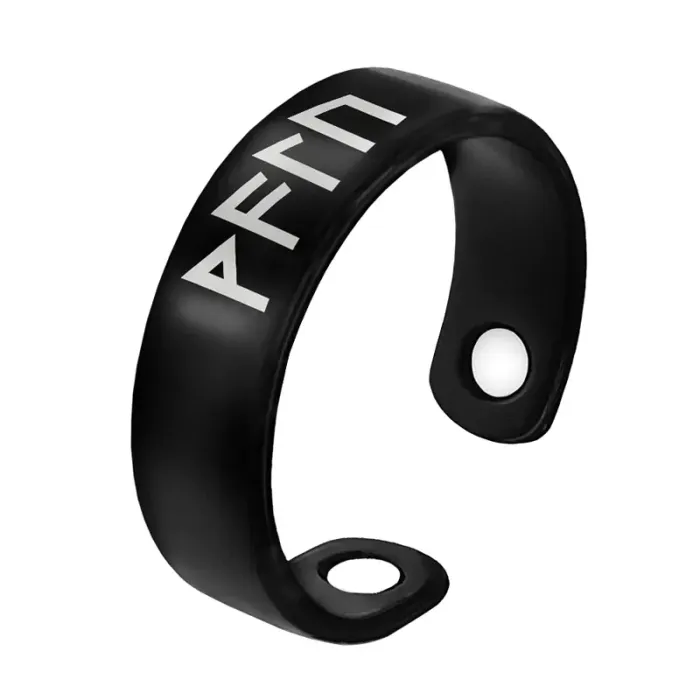 Магнитное кольцо из бижутерного сплава с лазерной гравировкой рун.
