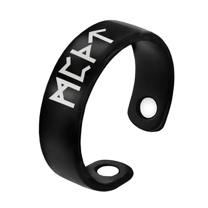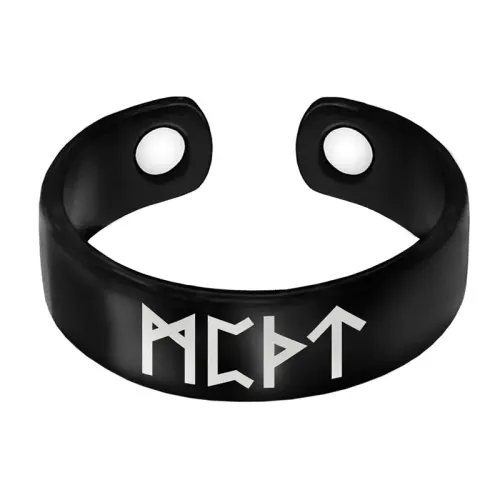 Магнитное кольцо для сувенирного или декоративного ношения. Изготовлено из бижутерного сплава с лазерной гравировкой рун.