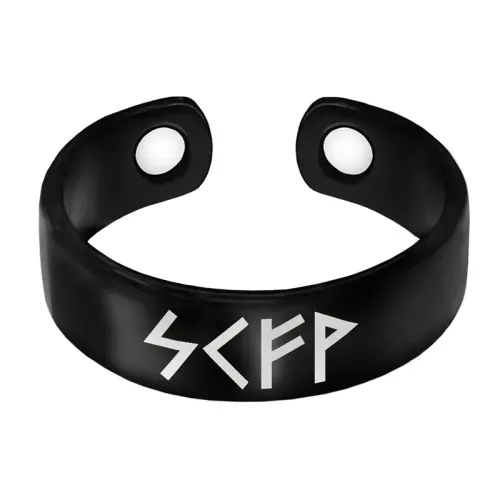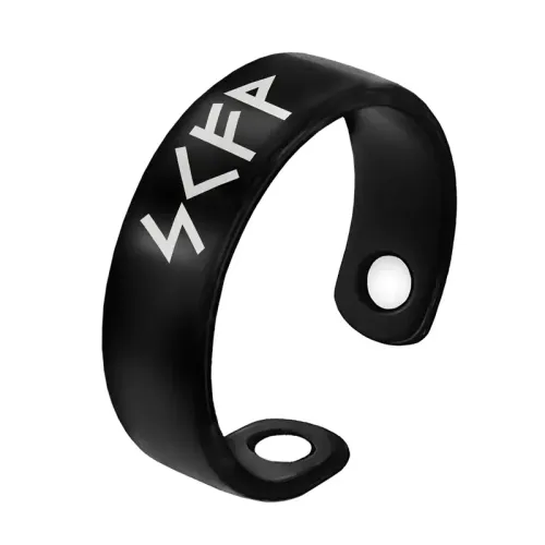 Магнитное кольцо-сувенир из бижутерного сплава с лазерной гравировкой рунических символов.