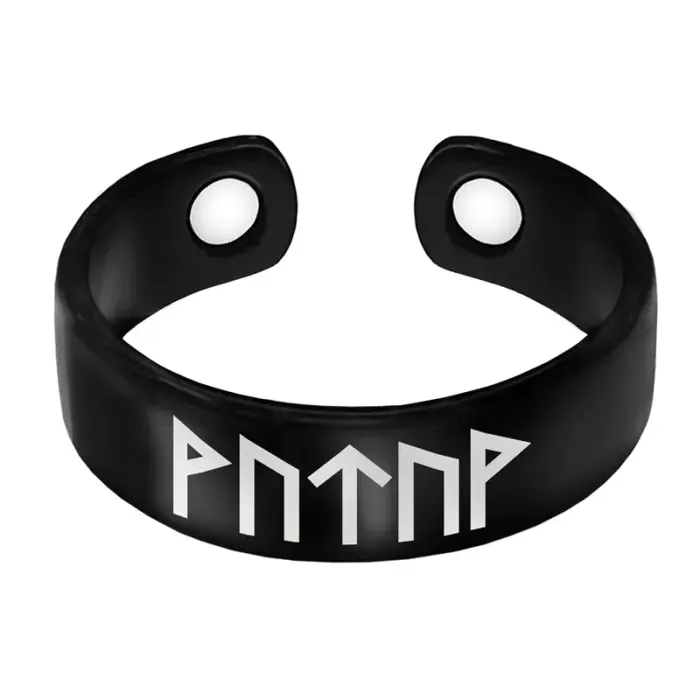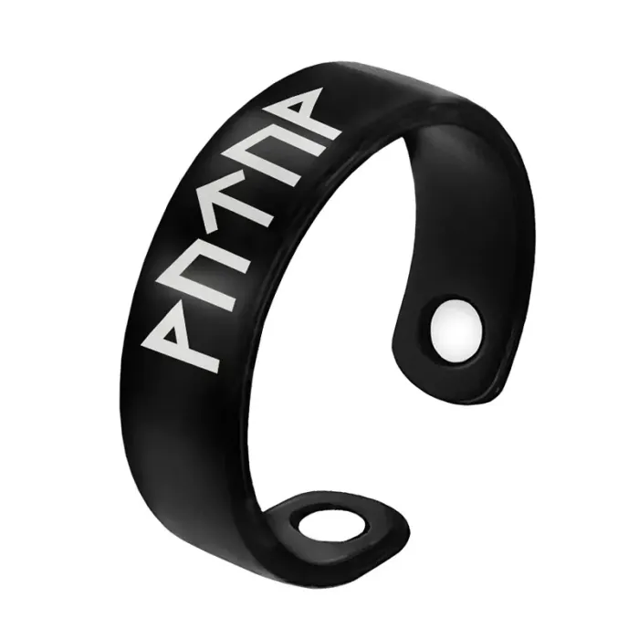 Магнитное кольцо-сувенир из бижутерного сплава с лазерной гравировкой рун.