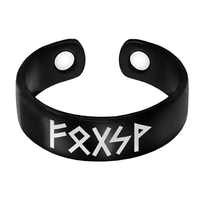 Магнитное кольцо-сувенир из бижутерного сплава с лазерной гравировкой рун.