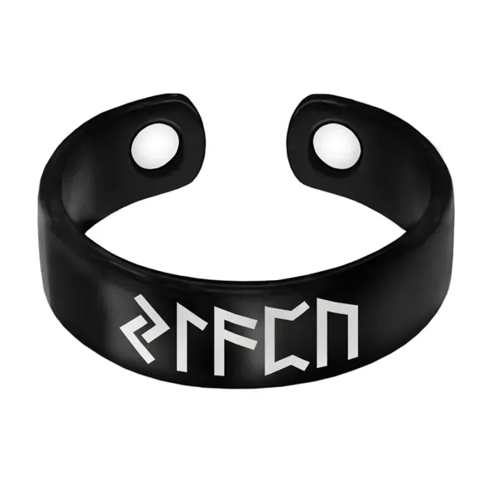 Магнитное кольцо из бижутерного сплава с лазерной гравировкой рун.