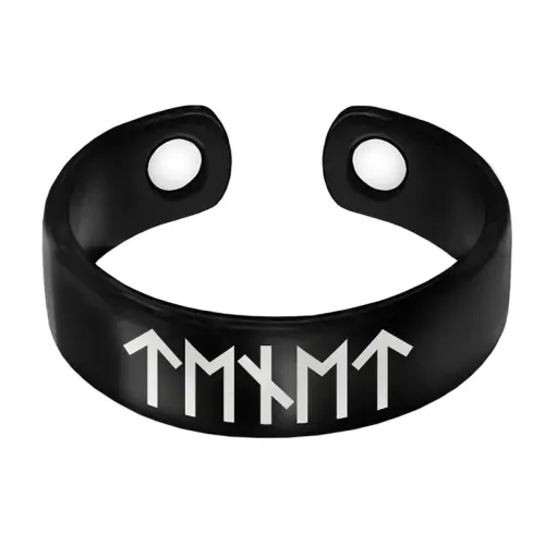 Магнитное кольцо для ношения как аксессуар. Изготовлено из бижутерного сплава, имеет безразмерную форму и лазерную гравировку с рунами.