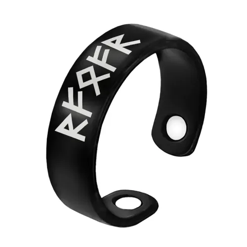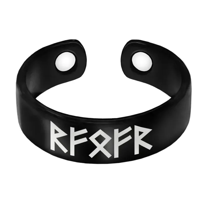 Магнитное кольцо-сувенир из бижутерного сплава с лазерной гравировкой рун.