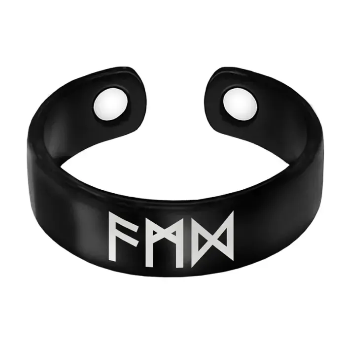 Магнитное кольцо-оберег из бижутерного сплава с лазерной гравировкой рун.