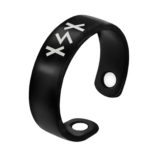 Магнитное кольцо для ношения как сувенир или аксессуар. Изготовлено из бижутерного сплава, имеет безразмерную форму и лазерную гравировку.