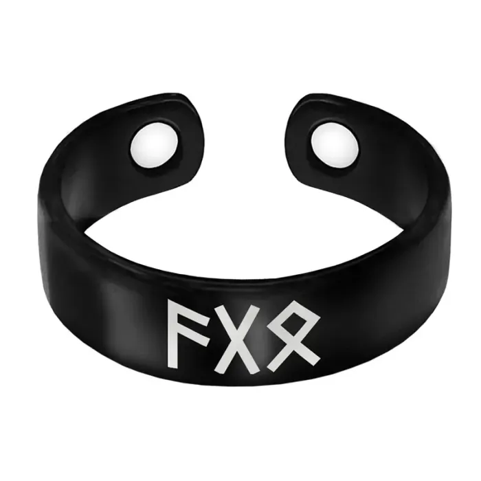 Магнитное кольцо-сувенир из бижутерного сплава с лазерной гравировкой рунических символов.