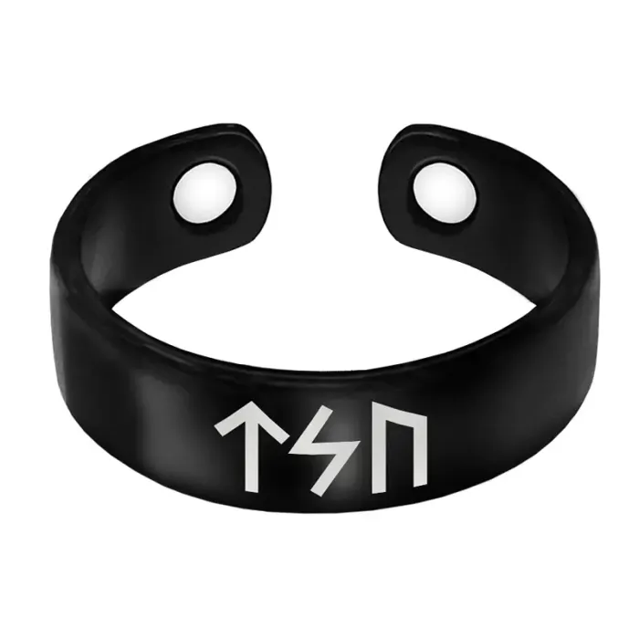 Магнитное кольцо-сувенир из бижутерного сплава с лазерной гравировкой рун.