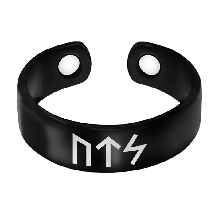 Магнитное кольцо из бижутерного сплава с лазерной гравировкой рунических символов. Безразмерная форма.