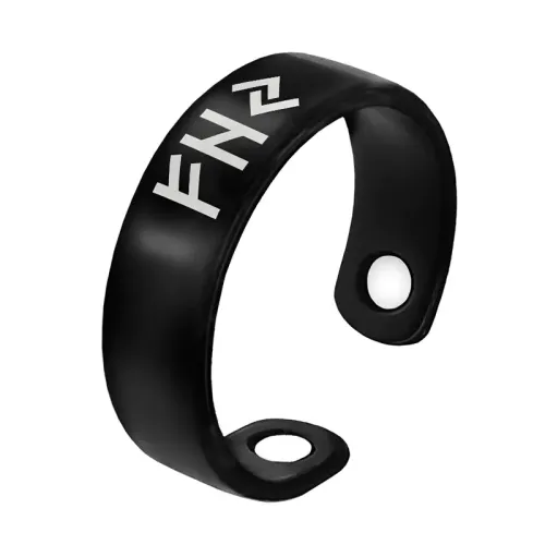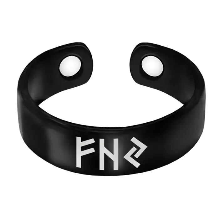 Магнитное кольцо из бижутерного сплава с лазерной гравировкой рун Феху, Хагалаз и Йера. Безразмерная конструкция.
