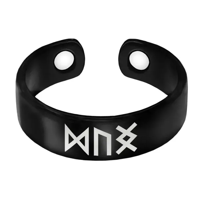 Магнитное кольцо для ношения в качестве аксессуара. Изготовлено из бижутерного сплава с лазерной гравировкой, имеет безразмерную форму.