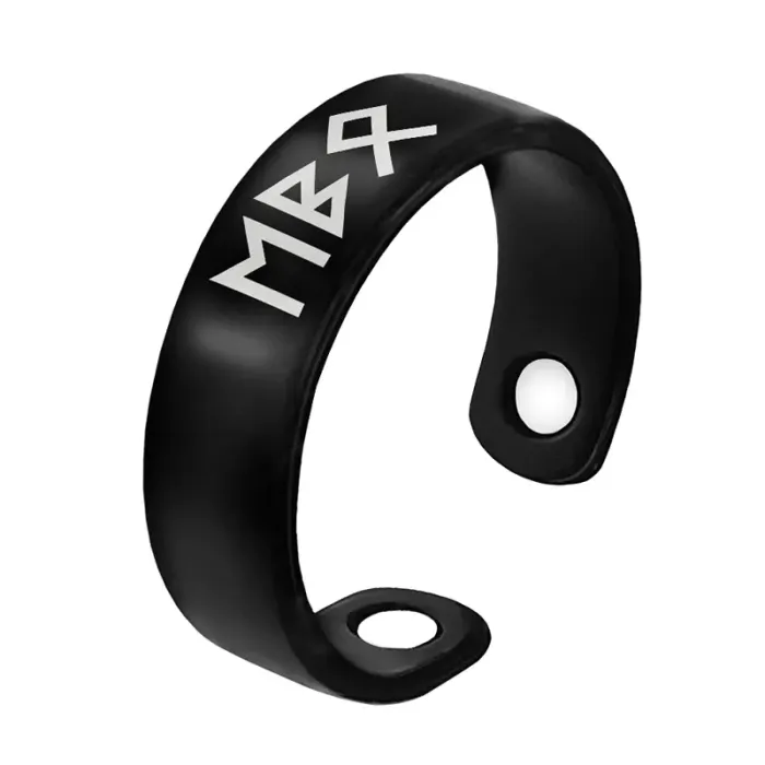 Магнитное кольцо из бижутерного сплава с лазерной гравировкой рунической формулы.