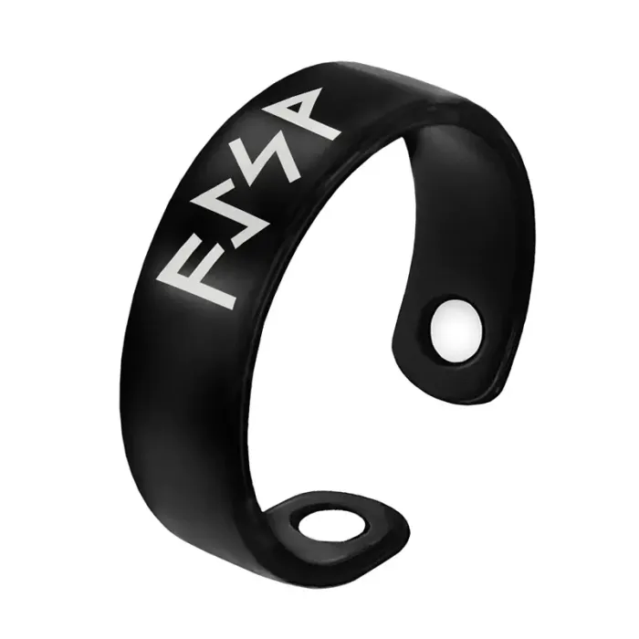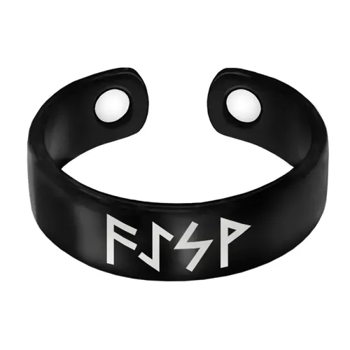 Магнитное кольцо из бижутерного сплава с лазерной гравировкой формулы и рун.