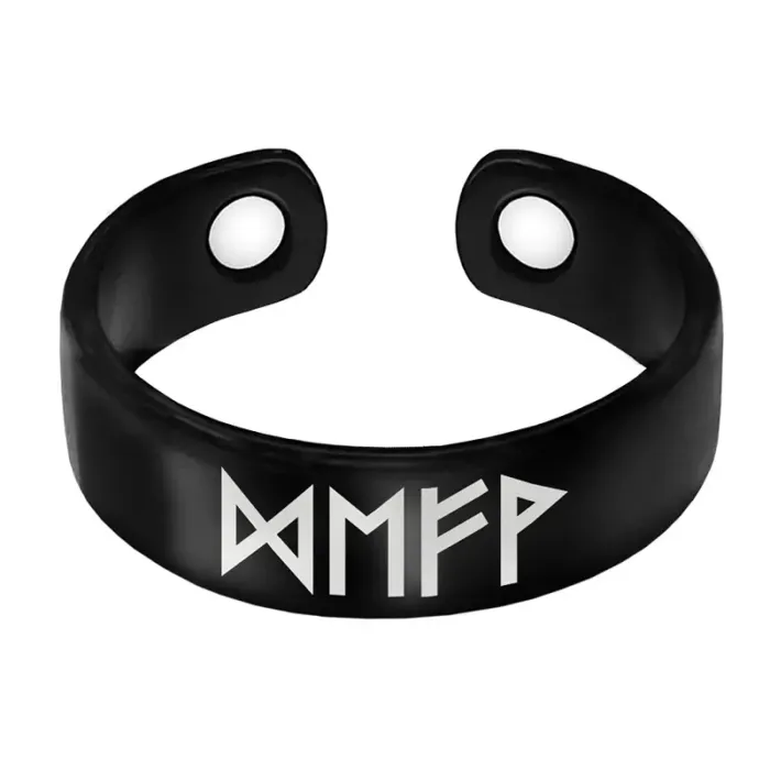 Магнитное кольцо из бижутерного сплава с лазерной гравировкой рун.