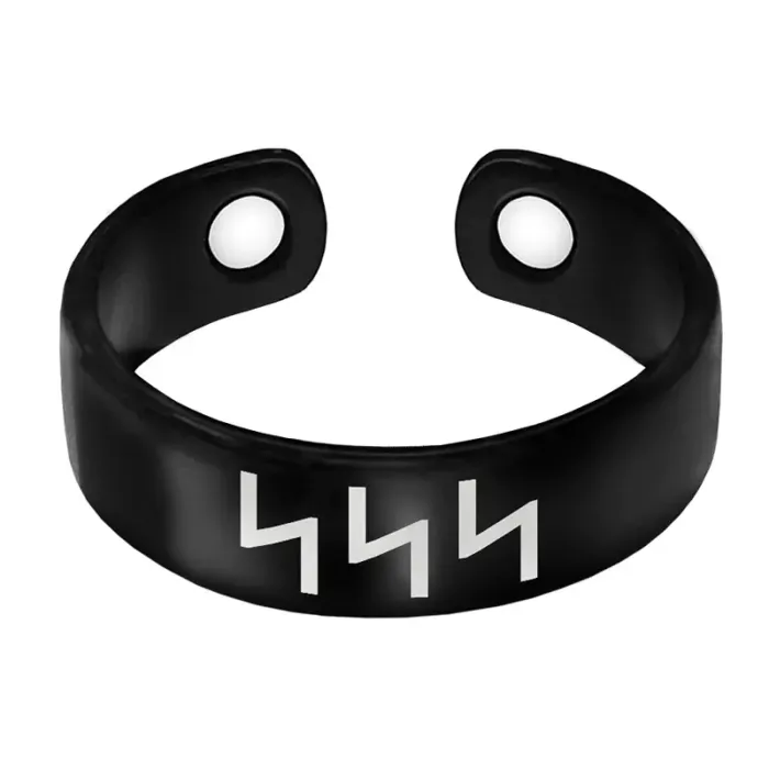Магнитное кольцо-сувенир из бижутерного сплава с лазерной гравировкой в виде руны.