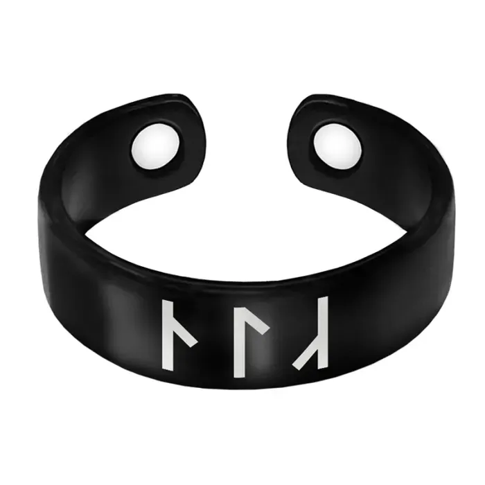 Магнитное кольцо для пальца из бижутерного сплава с лазерной гравировкой славянских рун.