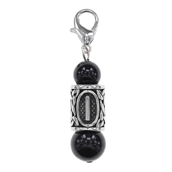 Брелок-амулет Иса с руной из нержавеющей стали, Черный агат BKN1-04