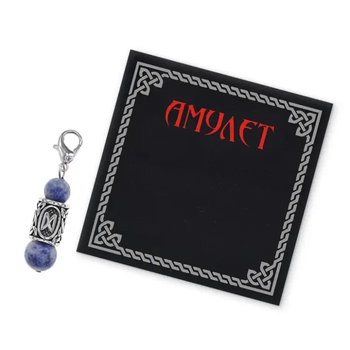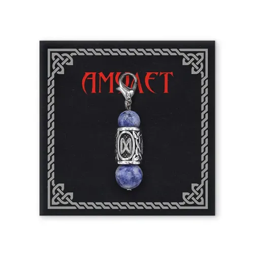 Брелок-амулет Дагаз с руной из нержавеющей стали, Содалит BKN1-06