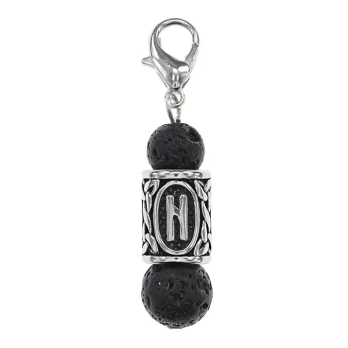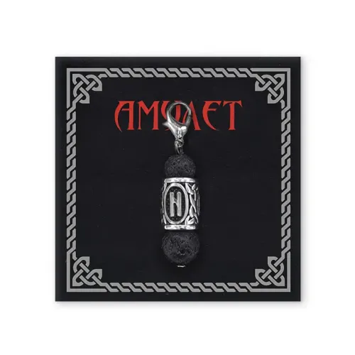 Брелок-амулет с руной Хагалаз. Изготовлен из нержавеющей стали и натурального камня лава.