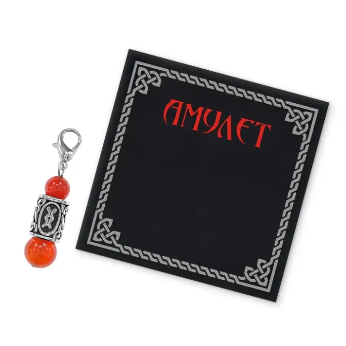 Брелок-амулет с руной Ингуз из нержавеющей стали и натурального сердолика.