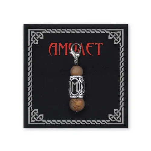 Брелок-амулет Эваз с руной из нержав. стали, Яшма песочная BKN1-11