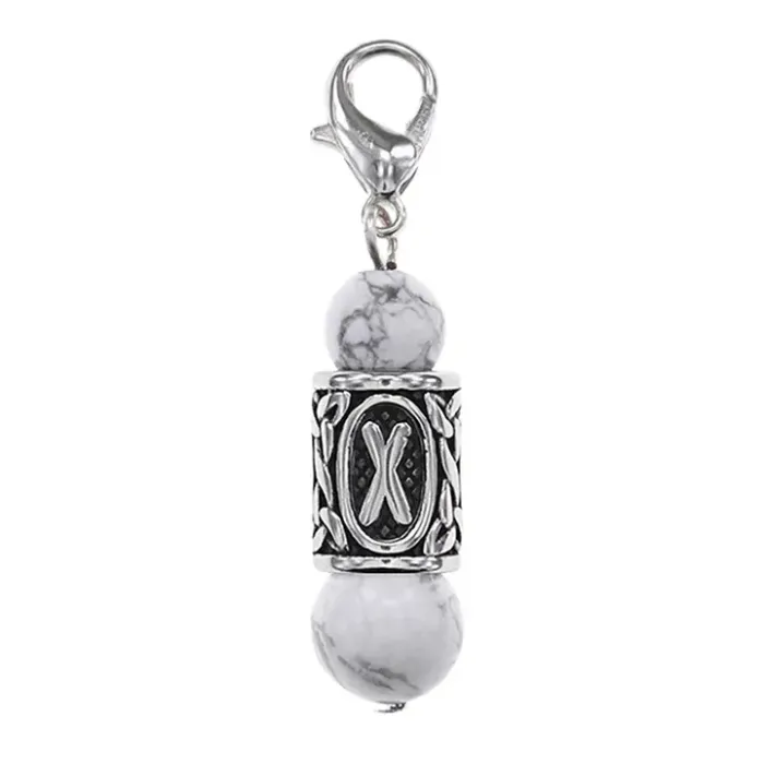 Брелок-амулет с руной Гебо из нержавеющей стали и натурального камня кахолонг.