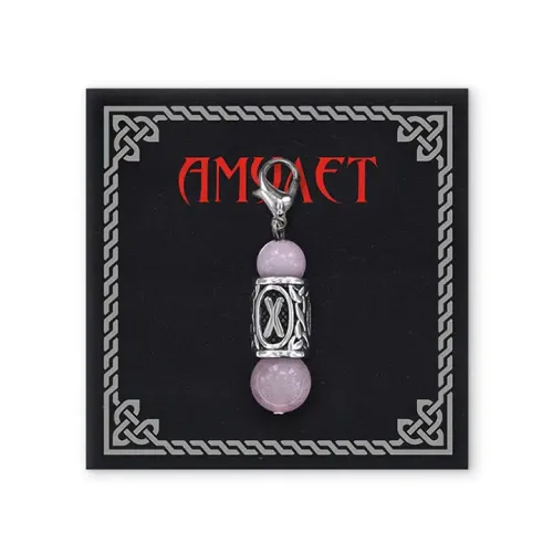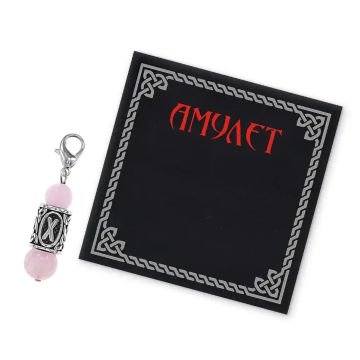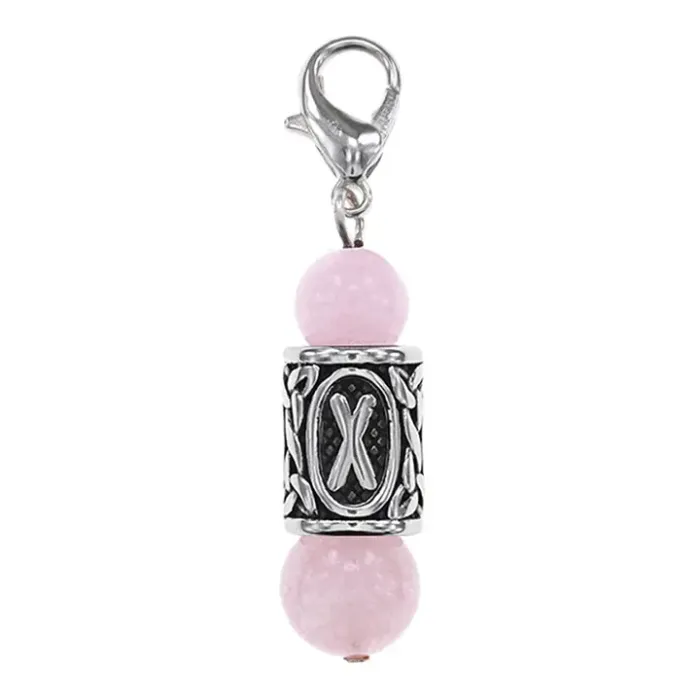 Брелок-амулет с руной Гебо из нержавеющей стали и натурального розового кварца.