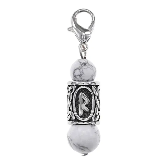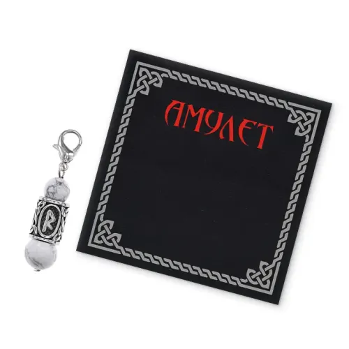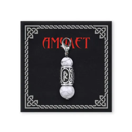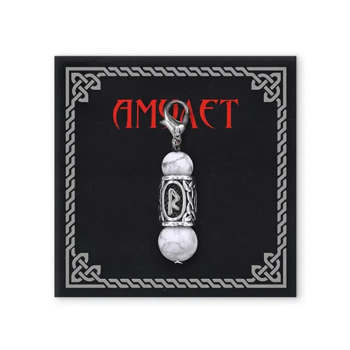 Брелок-амулет с руной Райдо из нержавеющей стали и натурального камня кахолонг.