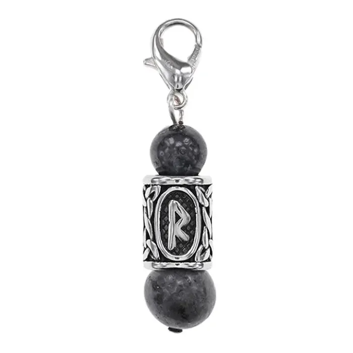 Брелок-амулет с руной Райдо из нержавеющей стали и натурального камня лабрадор.