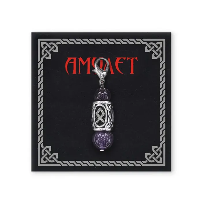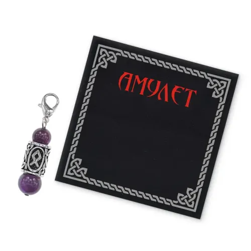 Размеры и комплектация: Комплектация включает брелок-амулет, металлический карабин и вкладыш с описанием значения руны. Упаковка — полипропиленовый пакет с этикеткой.