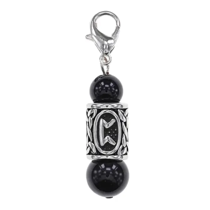 Брелок-амулет Перт с руной из нержавеющей стали, Черный агат BKN1-28