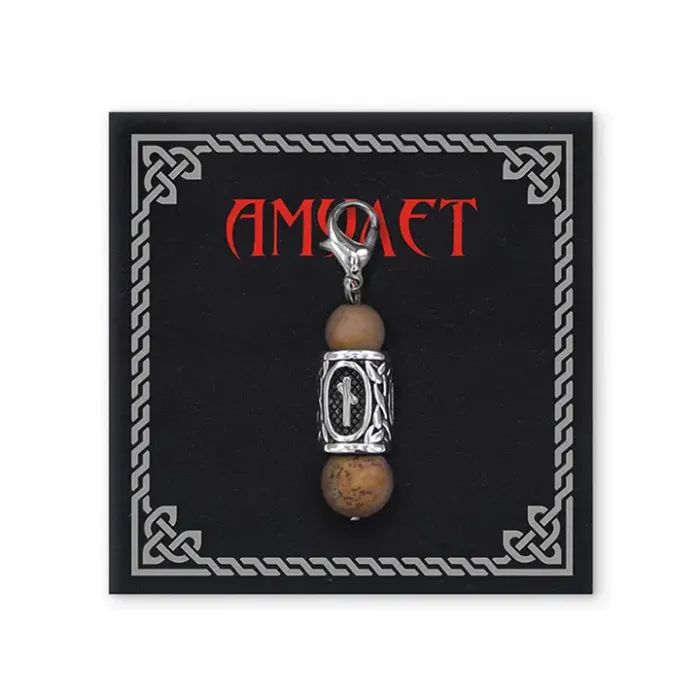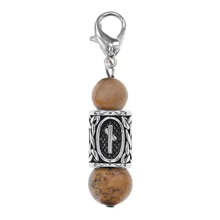 Брелок-амулет Наутиз с руной из нержавеющей стали, Яшма песочная BKN1-29