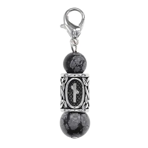 Брелок-амулет с руной Наутиз, изготовленный из нержавеющей стали и натурального обсидиана.