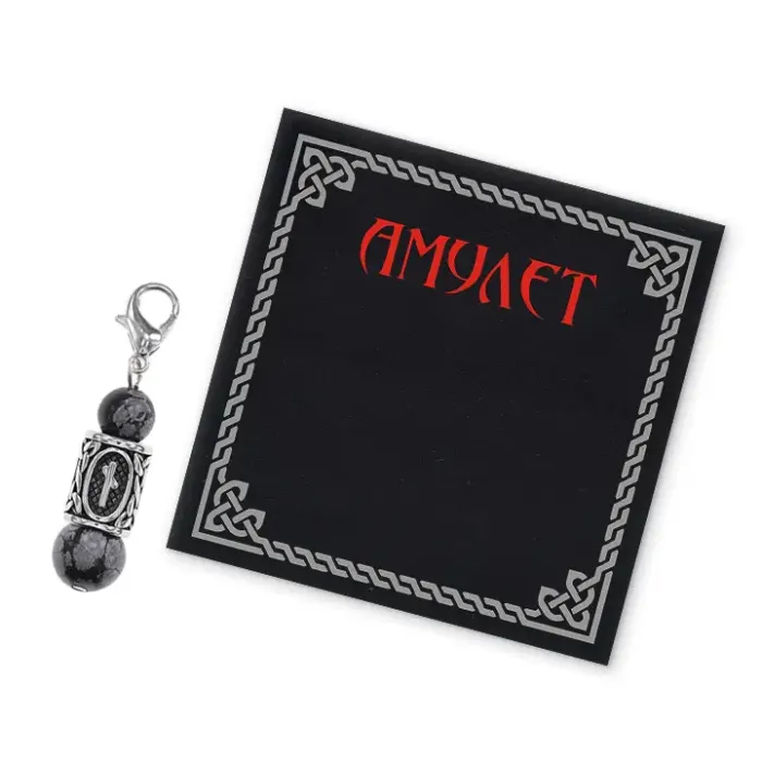 Размеры и комплектация: Диаметр камней 8 и 10 мм. Комплектация включает брелок с металлическим карабином и вкладыш с описанием руны. Упаковка — полипропиленовый пакет.