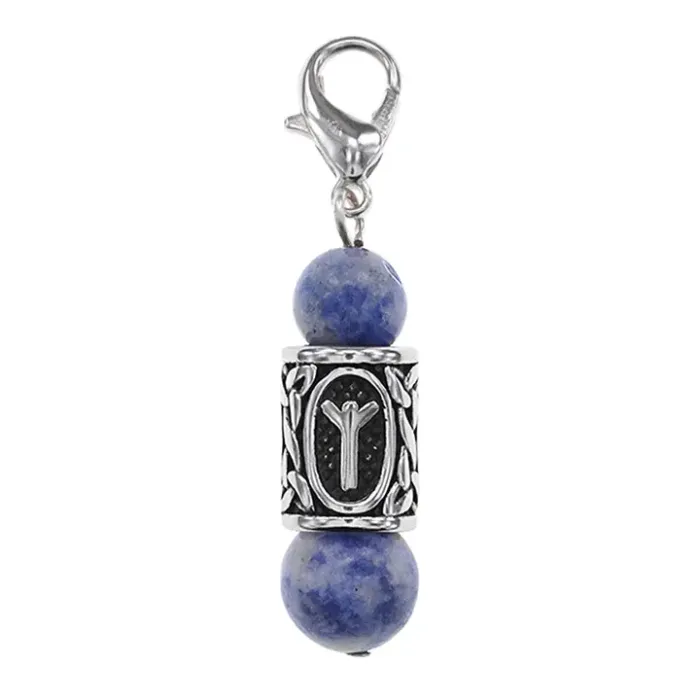 Брелок-амулет Альгиз с руной из нержавеющей стали, Содалит BKN1-31