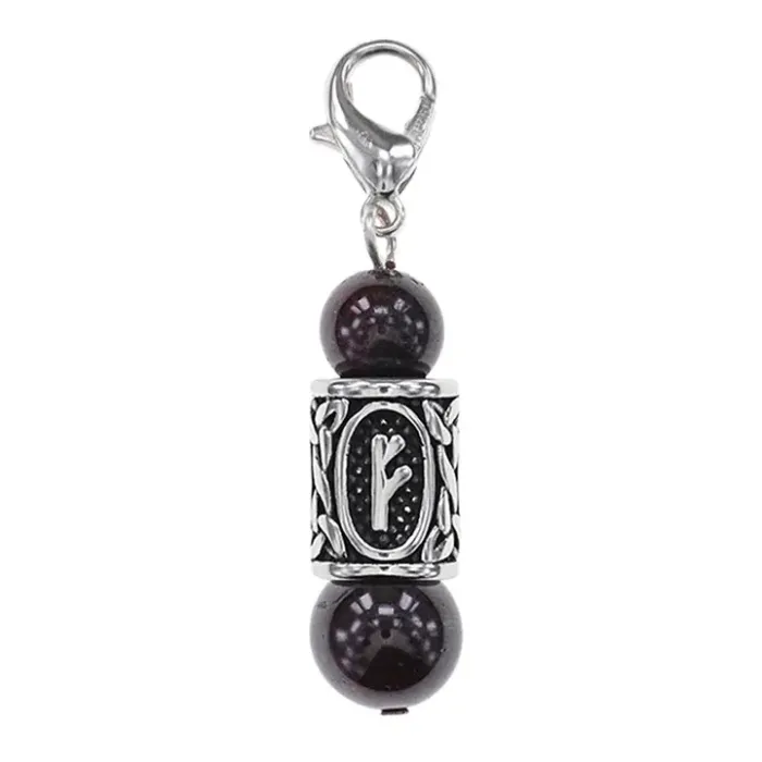 Брелок-амулет Феху с руной из нержавеющей стали, Гранат BKN1-33