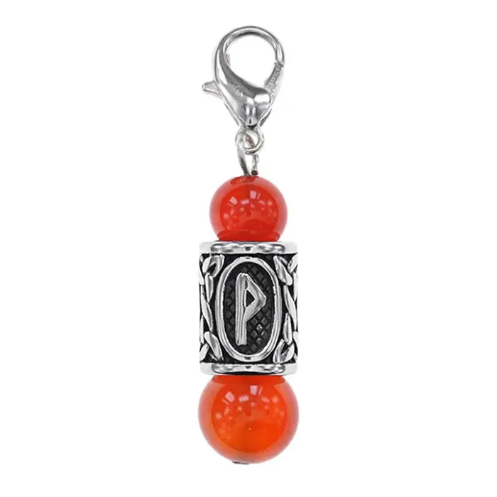 Брелок-амулет с руной Вуньо из нержавеющей стали и натурального сердолика.