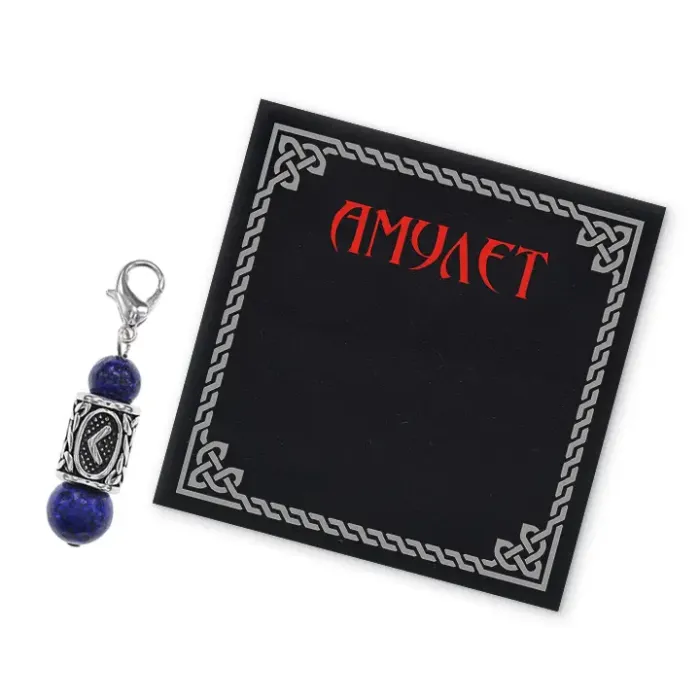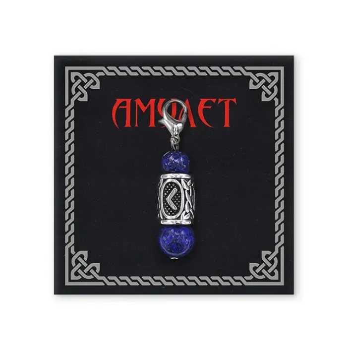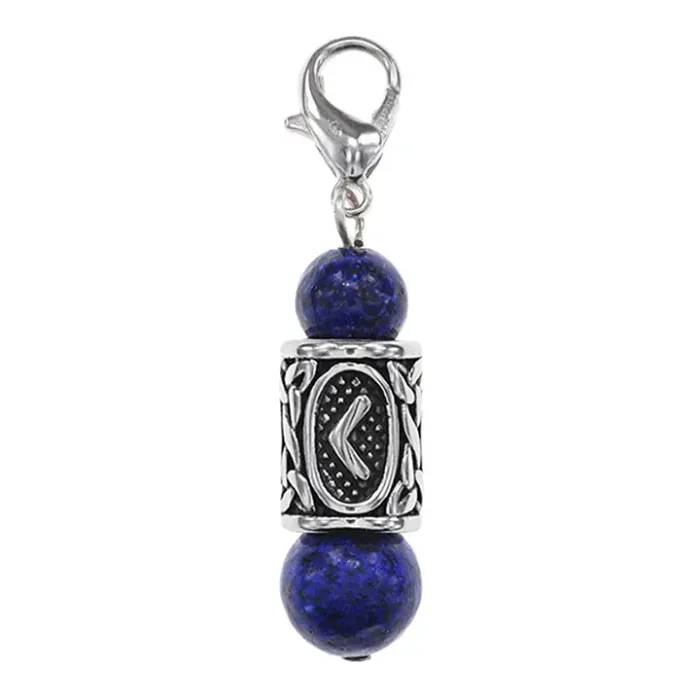 Брелок-амулет Кеназ с руной из нержавеющей стали, Лазурит BKN1-37