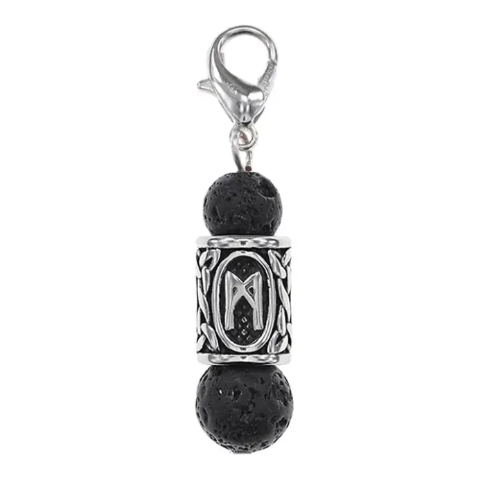 Брелок-амулет из нержавеющей стали с натуральным камнем лава и руническим знаком Манназ.