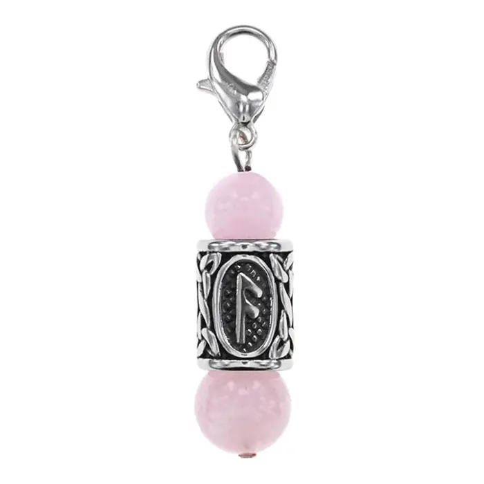 Брелок-амулет Ансуз с руной из нержавеющей стали, Розовый кварц BKN1-47