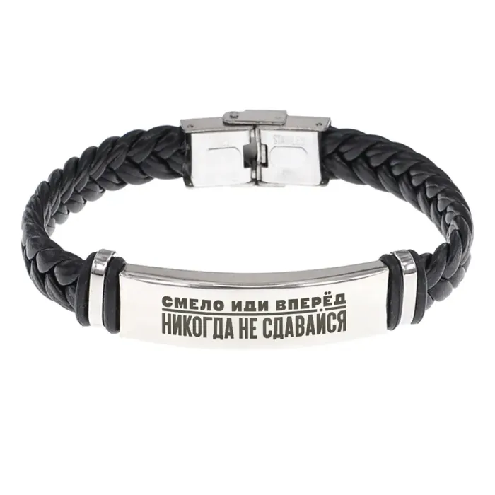 Кожаный браслет с гравировкой «Смело иди вперёд» для повседневного ношения.